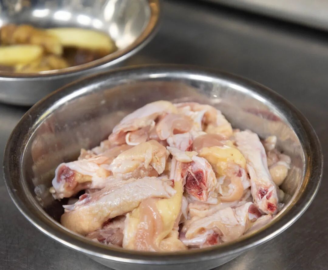 炊烟的茶油炒鸡,只选用鸡腿和鸡翅,这两个部位的鸡肉口感最佳、不柴、易入味、炒出来味道更香。